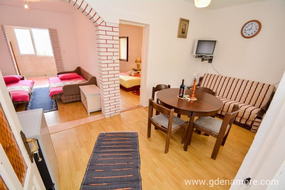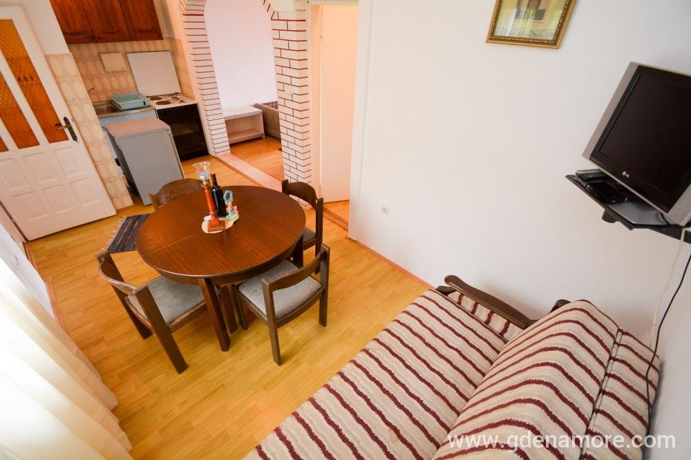 Apartman se nalazi u Bijeloj, u porodičnoj kući. Apartman je potpuno zasebna jedinica sa parkingom, ulazom, terasom te 3 sobe. Kapacitet apartmana je 5 osoba. Apartman posjeduje 2 jednokrevetna lezaja, te jedan sofa kauč na izvlačenje te jedan dvokrevetni lezaj.