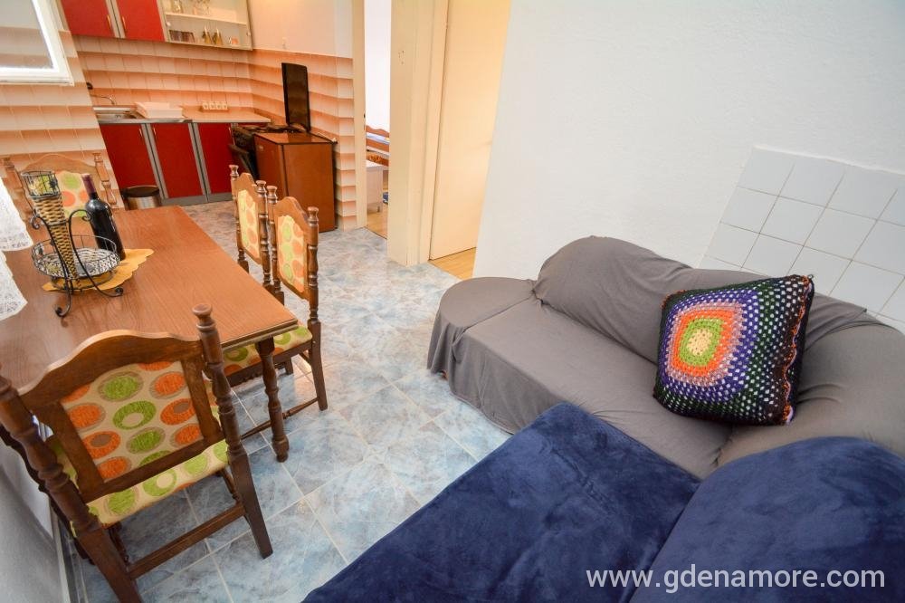 Apartman se nalazi u Bijeloj, u porodičnoj kući. Apartman je potpuno zasebna jedinica sa parkingom, ulazom, terasom te 3 sobe. Kapacitet apartmana je 5 osoba. Apartman posjeduje 2 jednokrevetna lezaja, te jedan sofa kauč na izvlačenje te jedan dvokrevetni lezaj.